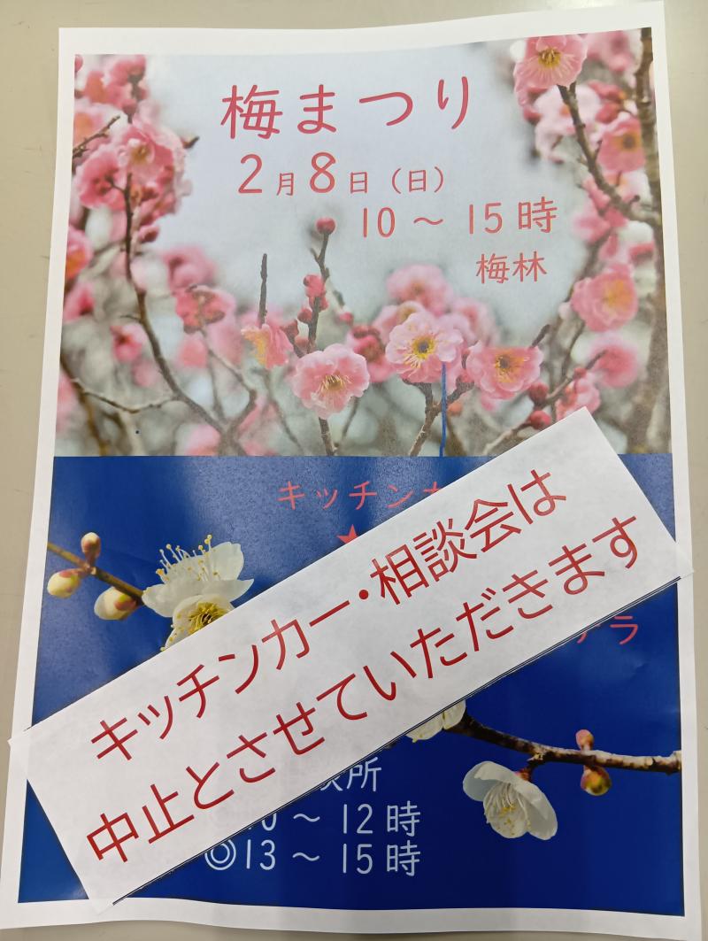 「梅まつり」キッチンカーと相談会は中止とさせていただきます