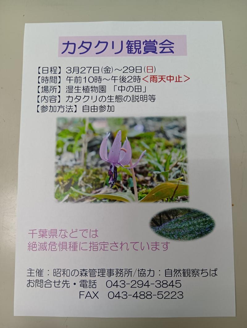 3月27日(金)~29日(日)、湿生植物園でカタクリの鑑賞会を行います。