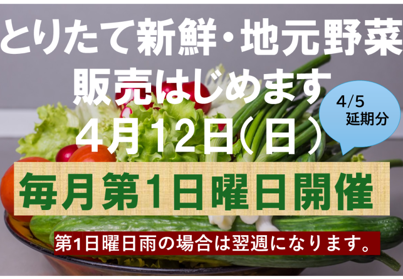 毎月1度、昭和の森・売店で「とれたて地元野菜」の販売を開始します!