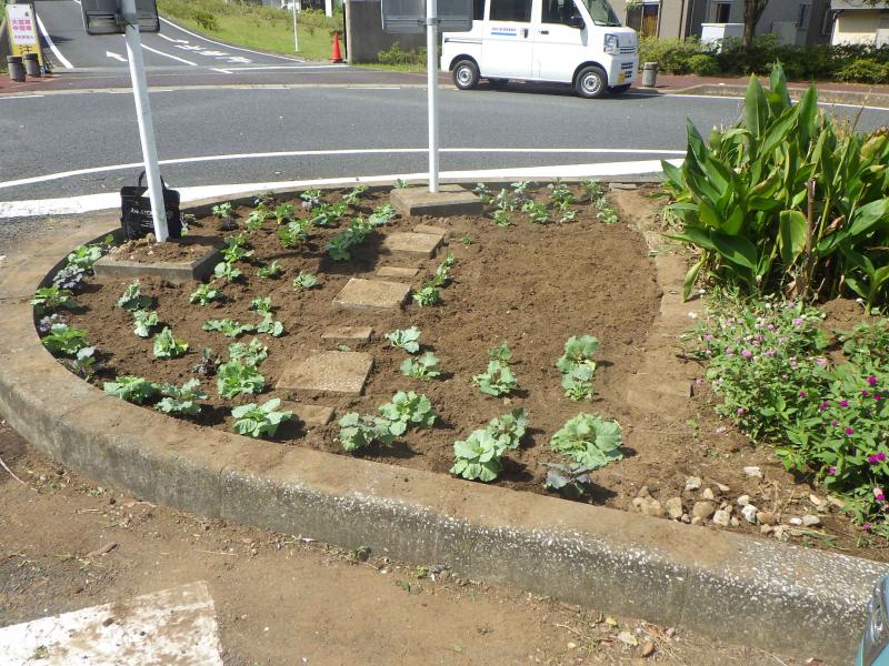 第一花壇の草刈りと第二花壇のハボタンの植込みを行いました。