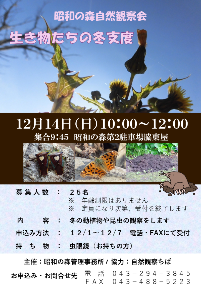 12月14日(日)自然観察会のテーマは「生き物たちの冬支度」