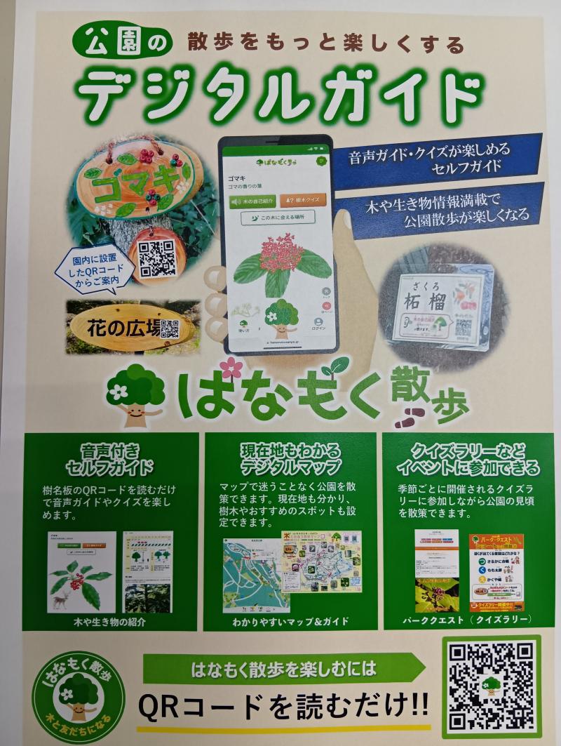 「はなもく散歩」というデジタルガイドで、その木について学べます。