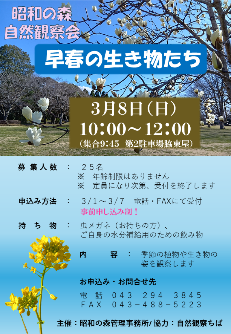 3月(定例)の自然観察会のお知らせ